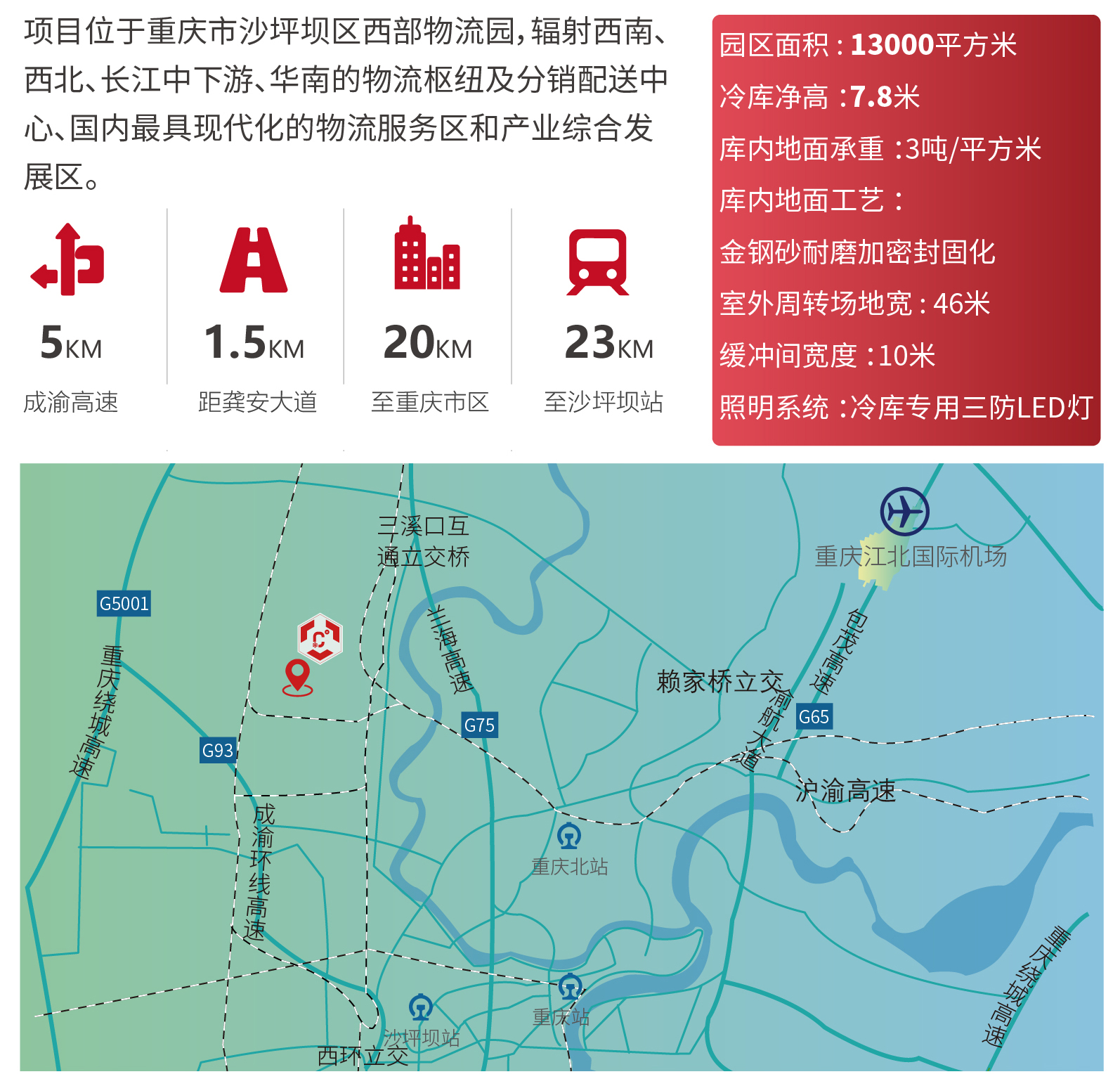 ?區(qū)位優(yōu)勢——項(xiàng)目位于重慶市沙坪壩區(qū)西部物流園,輻射西南、西北、長江中下游、華南的物流樞紐及分銷配送中心、國內(nèi)最具現(xiàn)代化的物流服務(wù)區(qū)和產(chǎn)業(yè)綜合發(fā)展區(qū)。
