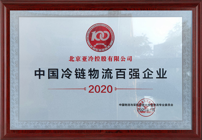 亞冷榮獲 2020年中國冷鏈物流百強企業