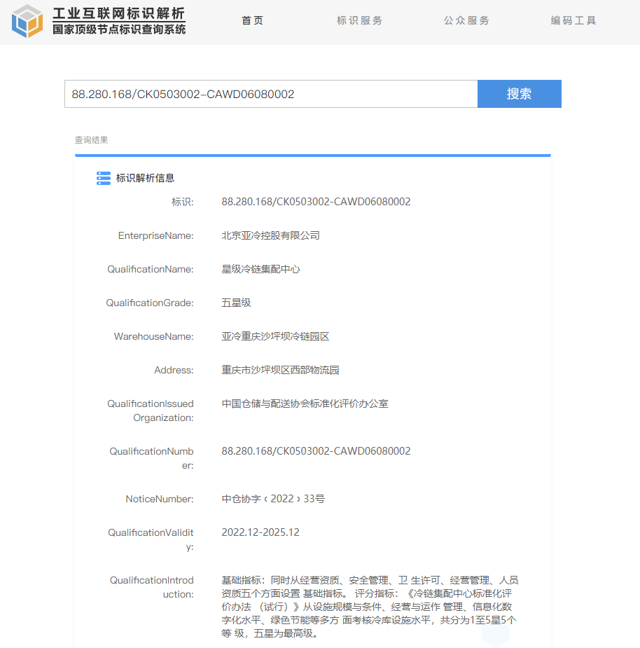這是行業(yè)內(nèi)首次建立冷鏈集配中心標(biāo)準(zhǔn)化體系,并且開展的第一批等級資質(zhì)評標(biāo)項(xiàng)目,亞冷重慶沙坪壩冷鏈園區(qū)一舉拿到最高標(biāo)準(zhǔn)“五星級冷鏈集配中心”資質(zhì),這代表著該園區(qū)在設(shè)施規(guī)模與條件、經(jīng)營與運(yùn)作管理、信息化數(shù)字化水平、綠色節(jié)能等多方面均達(dá)到國內(nèi)頂尖水平。這得益于亞冷是同行業(yè)中體系標(biāo)準(zhǔn)建設(shè)起步早、標(biāo)準(zhǔn)較高、執(zhí)行較好的企業(yè)。
